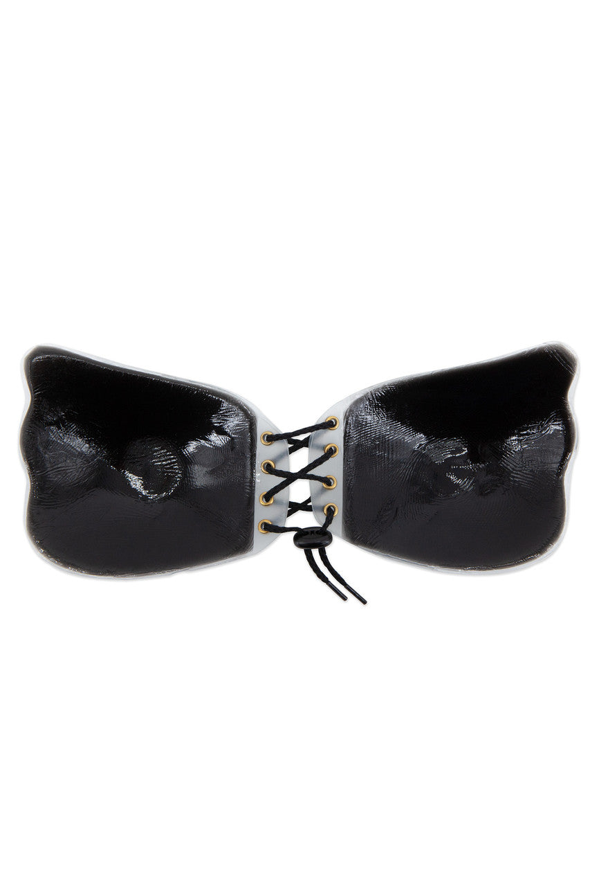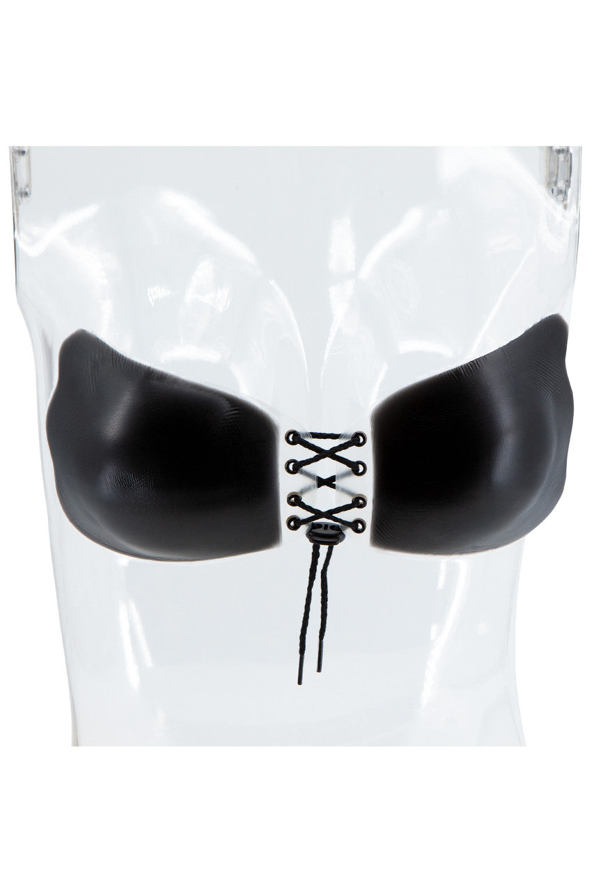 Adjustable lace-up strapless bra. Great for open-back outfits. Seamless wing shape bra Front adjustable lace-up tie closure Push up bra Backless Adhesive back Do not wear for extended periods/overnight. Not recommended for individuals with sensitive skin. Do not apply to open cuts, or sensitive, irritated, or sunburned skin. Discontinue use immediately if signs of rash or irritation appear or discomfort is felt. If you have trouble removing the product, soak in hot water.